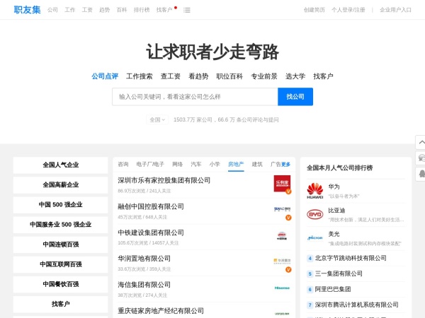 职友集(全称:职友集:发现和了解你未来的雇主)于2022年05月08日收录在本站评测分享分类目录,并成功建立了索引服务,供搜索引擎抓取/蜘蛛爬行/用户查找/检索服务;截至目前为止,本站已有 953个网友浏览了职友集网站。