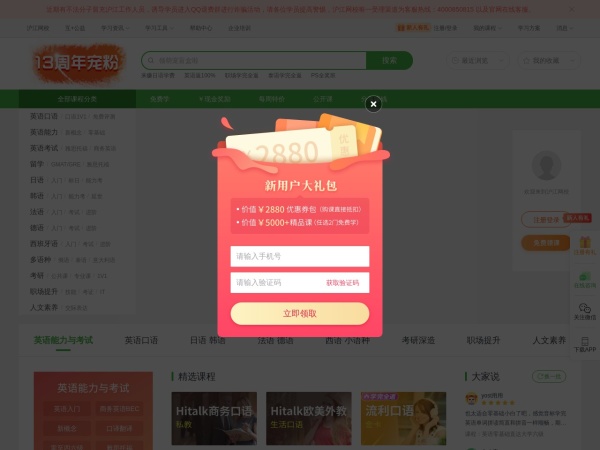 沪江网校(全称:沪江网校-英日法韩13国外语、考研留学、职场兴趣在线学)于2022年05月16日收录在本站在线教育分类目录,并成功建立了索引服务,供搜索引擎抓取/蜘蛛爬行/用户查找/检索服务;截至目前为止,本站已有 1028个网友浏览了沪江网校网站。