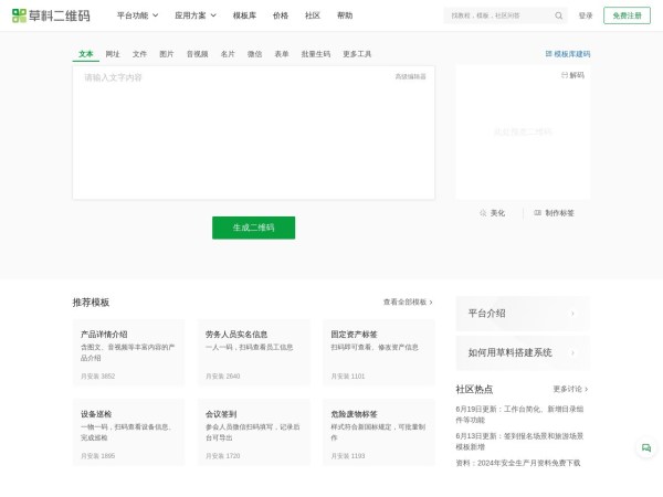 本站收录库提供的草料二维码生成器都来源于网络,不保证外部链接的准确性和完整性,同时,对于该外部链接的指向,不由收录库实际控制,在2024年06月24日收录时,该网页上的内容,都属于合规合法,后期网页的内容如出现违规,可以直接联系网站管理员进行删除(点我反馈)。