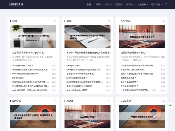 首席CTO笔记(全称:首席CTO笔记 - 互联网IT技术开发者技术学习&交流成长平台)于2023年05月02日收录在本站建站编程分类目录,并成功建立了索引服务,供搜索引擎抓取/蜘蛛爬行/用户查找/检索服务;截至目前为止,本站已有 2861个网友浏览了首席CTO笔记网站。