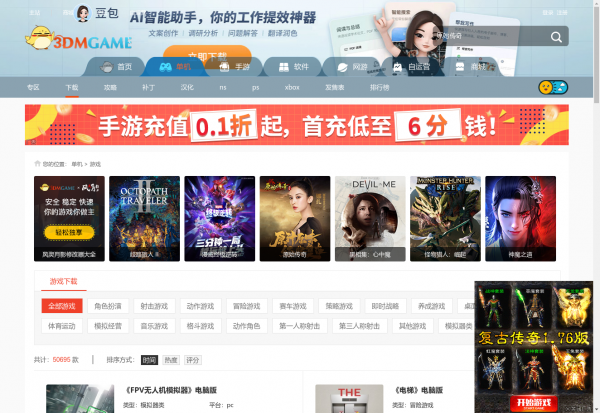 3DM下载_单机资源下载(全称:单机资源下载_一键下载安装游戏资源,辅助工具_3DM下载)于2025年02月23日收录在本站游戏网站分类目录,并成功建立了索引服务,供搜索引擎抓取/蜘蛛爬行/用户查找/检索服务;截至目前为止,本站已有 720个网友浏览了3DM下载_单机资源下载网站。