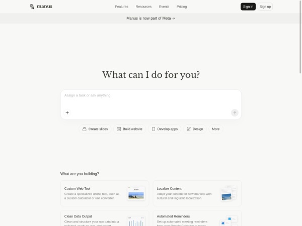 Manu(全称:Manus: Hands On AI)于2026年02月02日收录在本站AI智能分类目录,并成功建立了索引服务,供搜索引擎抓取/蜘蛛爬行/用户查找/检索服务;截至目前为止,本站已有 44个网友浏览了Manu网站。