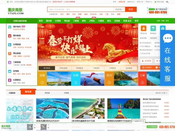 | www.ytszg.c** | 重庆中国青年旅行社有限公司 | 企业 | 渝ICP备07501303号-28 |