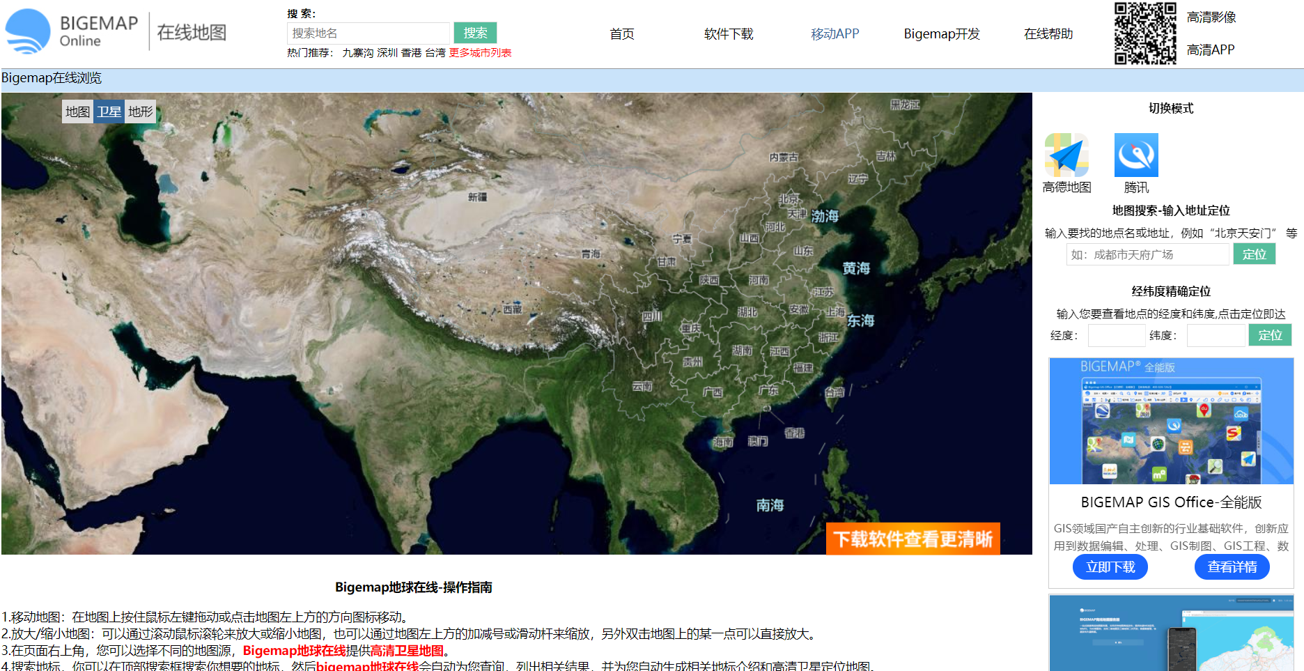 BIGEMAP在线地图(全称:卫星地图高清,地图高清卫星地图,最新高清卫星地图)于2026年02月05日收录在本站交通地图分类目录,并成功建立了索引服务,供搜索引擎抓取/蜘蛛爬行/用户查找/检索服务;截至目前为止,本站已有 29个网友浏览了BIGEMAP在线地图网站。