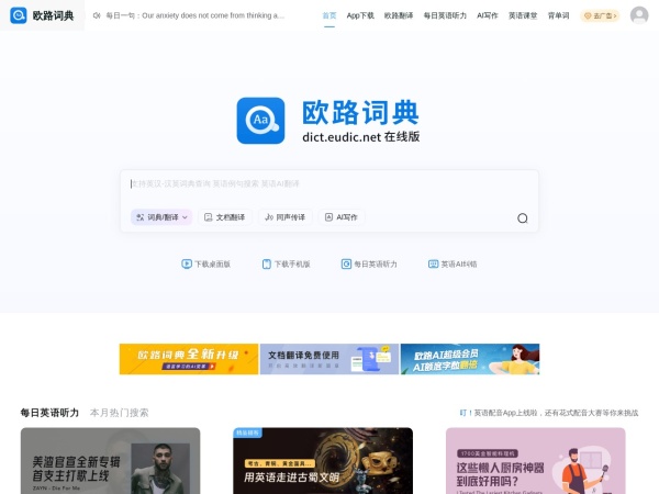 听力课堂(全称:《欧路词典》英语在线词典_英语翻译_Mac词典_苹果系统词霸_每日英语听力_英语入门听力发音_VOA听力_CNN听力_四六级听力训练)于2026年02月09日收录在本站外语综合分类目录,并成功建立了索引服务,供搜索引擎抓取/蜘蛛爬行/用户查找/检索服务;截至目前为止,本站已有 31个网友浏览了听力课堂网站。