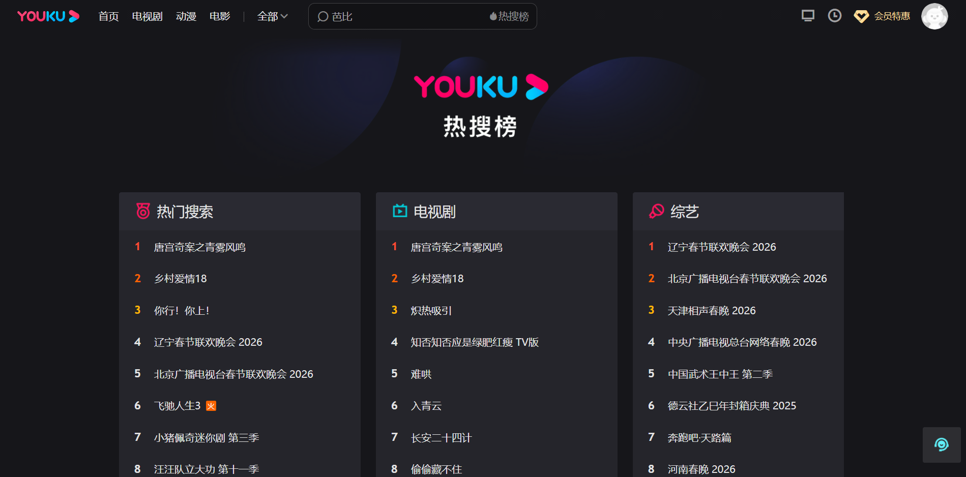 优酷热搜(全称:优酷热搜)于2026年02月18日收录在本站影视榜分类目录,并成功建立了索引服务,供搜索引擎抓取/蜘蛛爬行/用户查找/检索服务;截至目前为止,本站已有 24个网友浏览了优酷热搜网站。