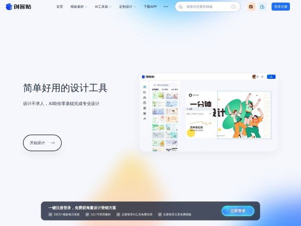 创客贴(全称:创客贴-做图做视频必备_会打字就能做设计,商用有版权)于2026年02月23日收录在本站设计素材分类目录,并成功建立了索引服务,供搜索引擎抓取/蜘蛛爬行/用户查找/检索服务;截至目前为止,本站已有 17个网友浏览了创客贴网站。