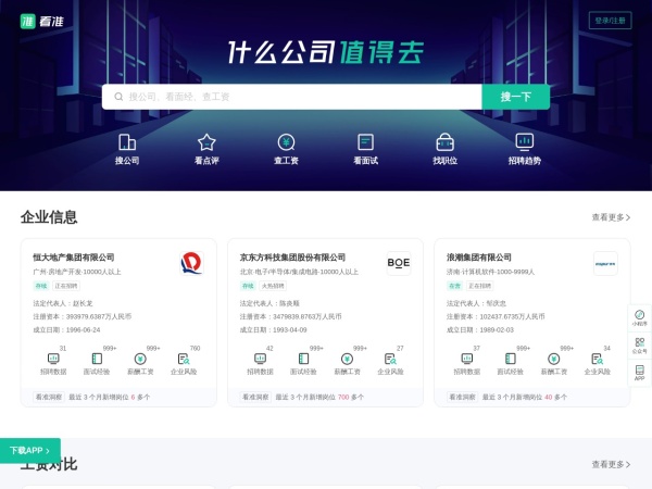 看准网 查工资 评公司 搜职位(全称:看准网-查工资|聊面试|评公司|搜职位|国内领先的职场信息平台)于2022年05月06日收录在本站求职招聘分类目录,并成功建立了索引服务,供搜索引擎抓取/蜘蛛爬行/用户查找/检索服务;截至目前为止,本站已有 831个网友浏览了看准网 查工资 评公司 搜职位网站。