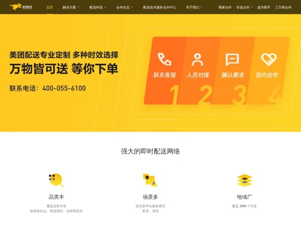 美团配送(全称:美团配送_美团众包_美团专送_美团骑手招聘_配送业务合作-美团官网)于2026年03月02日收录在本站外卖跑腿分类目录,并成功建立了索引服务,供搜索引擎抓取/蜘蛛爬行/用户查找/检索服务;截至目前为止,本站已有 13个网友浏览了美团配送网站。