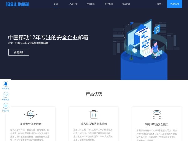 139邮箱(全称:139企业邮箱-中国移动邮箱品牌)于2026年03月10日收录在本站邮箱大全分类目录,并成功建立了索引服务,供搜索引擎抓取/蜘蛛爬行/用户查找/检索服务;截至目前为止,本站已有 9个网友浏览了139邮箱网站。