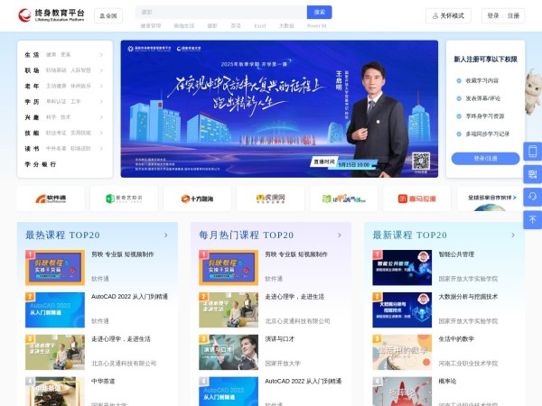终身教育(全称:终身教育平台)于2026年03月27日收录在本站在线教育分类目录,并成功建立了索引服务,供搜索引擎抓取/蜘蛛爬行/用户查找/检索服务;截至目前为止,本站已有 20个网友浏览了终身教育网站。