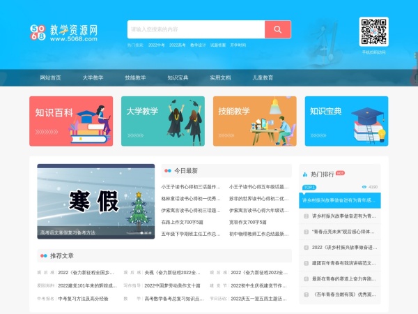 5068教学资源网是国内一流的教学资源共享平台,分享最新的教育资源、大学教学资源、技能教学、知识教学宝典、教学实用文档等相关内容,让学生、家长、教师方便快捷找到教学材料。