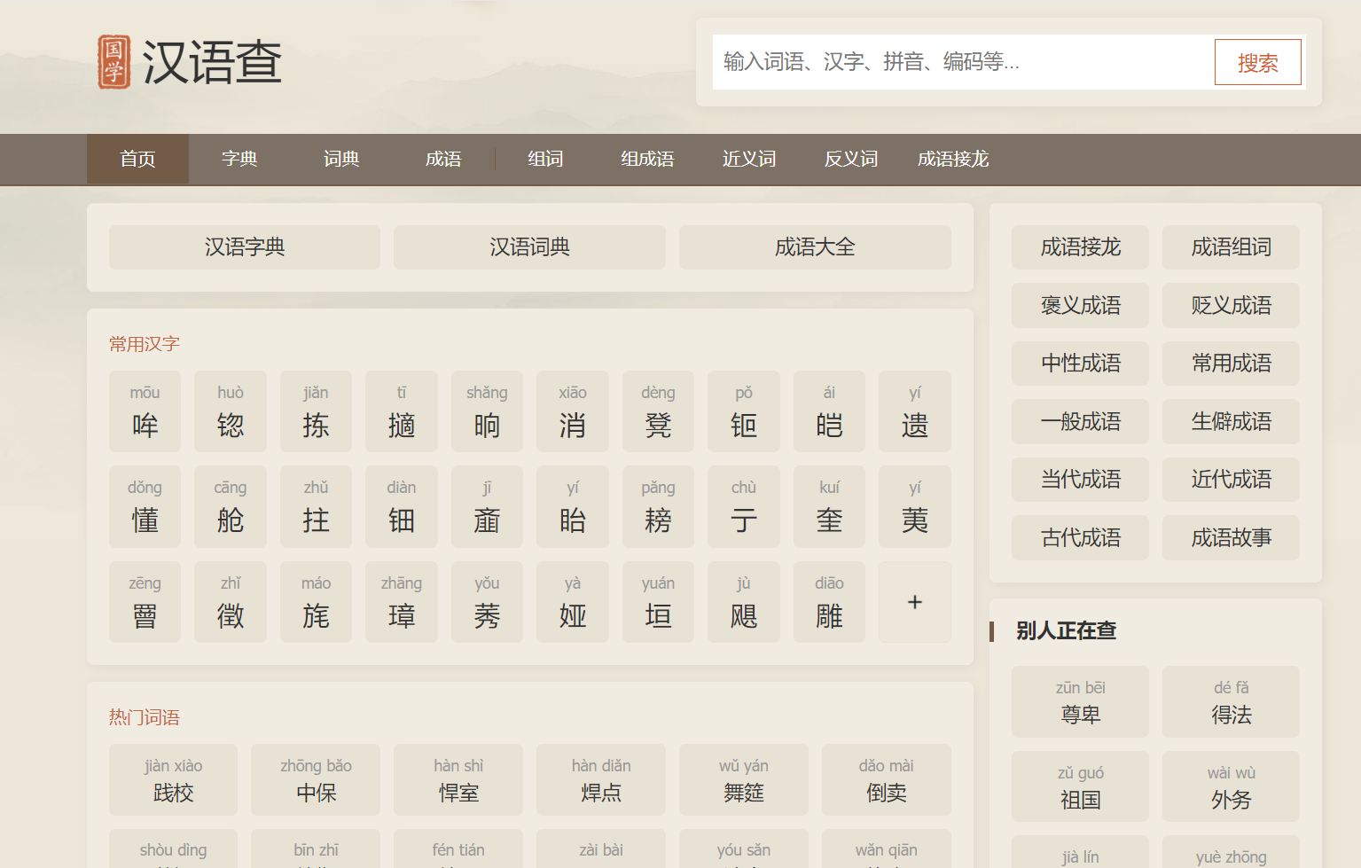 汉语查在线汉语字典,在线汉语词典,成语大全,组词等在线查询工具,是您学习汉语国学的好帮手。