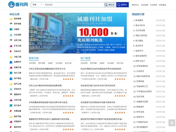 期刊网诚邀各刊社免费入驻!期刊网汇集国内各类期刊杂志如计算机期刊杂志、人工智能期刊杂志、大数据期刊杂志、医药卫生期刊杂志、工业技术期刊杂志、以及自然科学、农业科学和社会科学等领域的一万多余种科技学术期刊、3000多万篇的学术期刊论文数据库。期刊网提供期刊论文查询和论文检索,以及海量数据库资料免费在线阅读引证