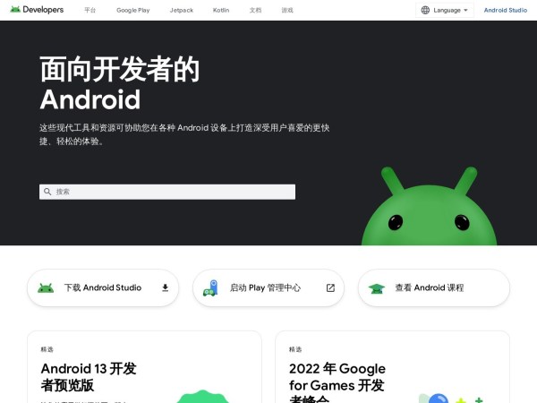 面向 Android 应用开发者的官方网站。提供 Android SDK 工具和 API 文档。安卓Android是由Google开发的一种移动操作系统。它是目前全球最流行的移动操作系统之一,在全球范围内有数十亿的设备在使用。