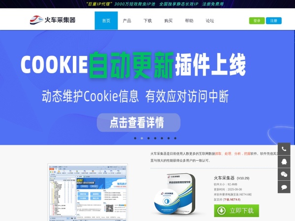 火车采集器软件是一款网页抓取工具,是用于网站信息采集,网站信息抓取,包括图片、文字等信息采集处理发布,是目前使用人数最多的互联网数据采集软件。合肥乐维信息技术有限公司出品,10年打造网页数据采集利器。