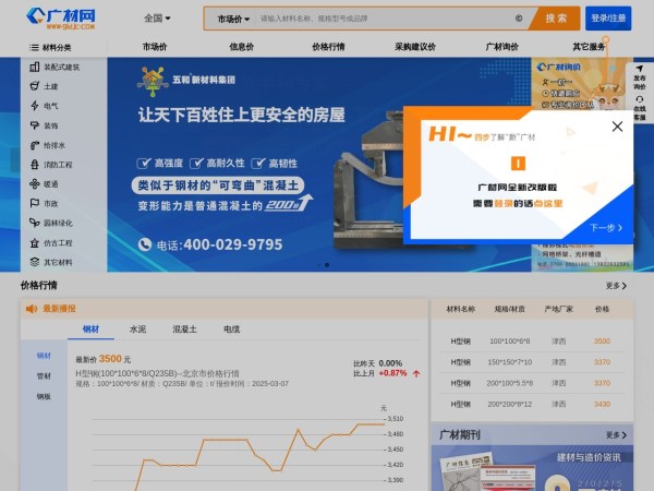 广联达旗下的建筑工程造价行业的材料价格查询平台,为您提供全面、专业、高效的建材信息价、市场价、供应商,材料查询服务,以及各种材料的价格行情。旨在为工程建设全过程的各参与方提供以“建筑材料与设备”为核心的信息服务!