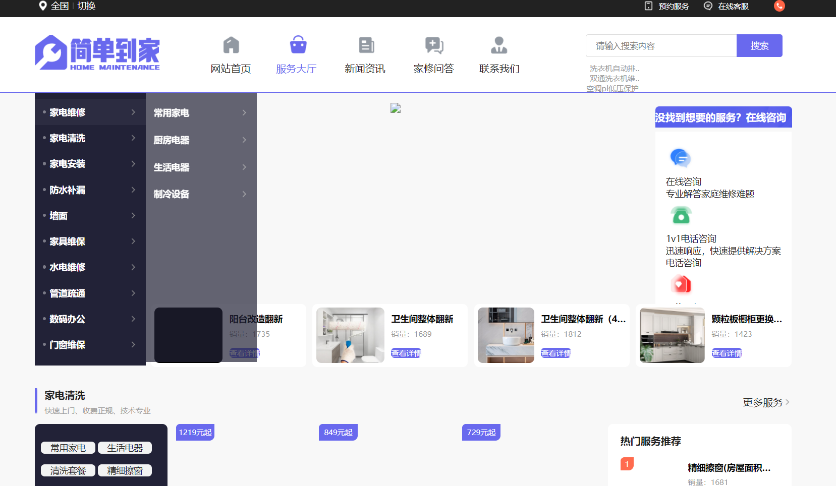 家电维修/清洗上门电话4000800692专业提供家电维修,中央空调维修,空调维修,电视维修,洗衣机维修,热水器维修,燃气灶维修,油烟机维修,空调清洗,油烟机清洗,简单到家-家电维修服务平台,提供空调,冰箱,洗衣机,燃气灶,热水器,油烟机等维修清洗安装服务.上万维修师傅覆盖全国五百个县级以上城市,上门维修,价格透明!