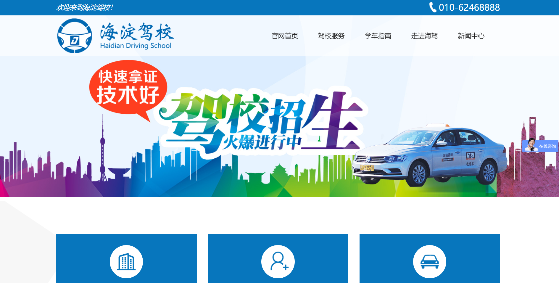 北京海驾机动车驾驶员培训有限公司(简称北京海淀驾校、海淀驾校、海驾),创建于1985年,是海淀区区属大型企业,亦是中关村科技园区北部新区配套服务机构,位于海淀区大西山风景区,占地3000余亩,三面环山一面临水,周边有凤凰岭、鹫峰、大觉寺、龙泉寺、稻香湖湿地公园等多处自然风景和人文景观。建校三十年来,海驾人秉持着“务实、创新、卓越、致远”的精神,致力于打造人文驾校、绿色驾校、科技驾校,力求把服务做到更好。海淀驾校拥有山路和城市训练道路86公里,建有法规培训教学楼和先进的电教、考试设备及独立的考试场和科目齐全的训练场。海驾以其严谨的教学计划、规范的培训教程、周到的贴心服务和优美的校园环境,受到广大学员欢迎,考试合格率在同行业中名列前茅,得到了行业主管部门和社会各界认可。