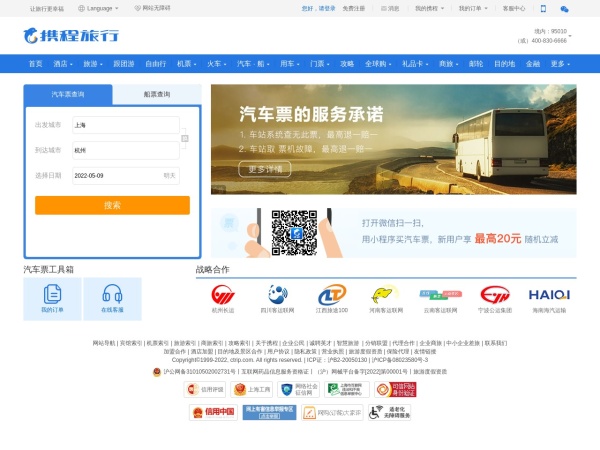 携程汽车票网上订票官网,为您提供2022年5月7日汽车票网上订票服务、汽车票余票查询、汽车票价比较,长途汽车票订票等服务,你可以查询各大长途客运站时刻表,汽车发车到达时间等,让您的出行节省时间,更方便