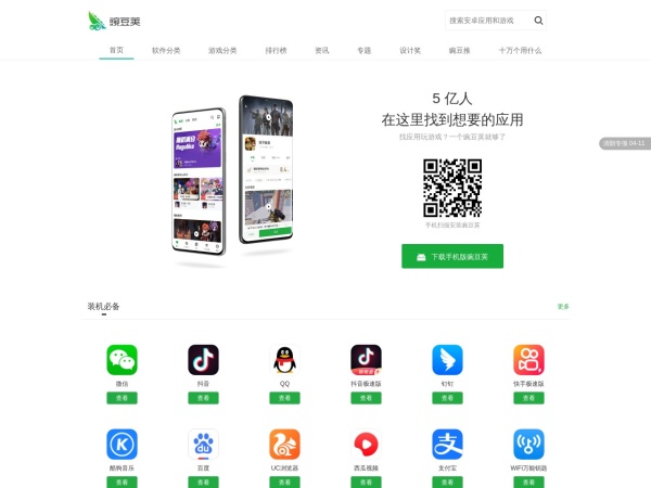 豌豆荚是一家提供绿色安全应用与游戏的下载市场,商店上汇聚了海量更新更全的安卓软件、安卓应用和安卓游戏免费下载资源。