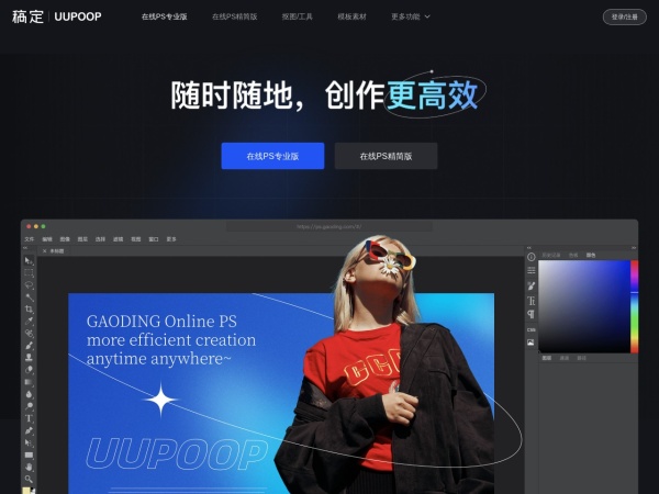 PS在线图片编辑器是一个专业精简的在线ps图片照片制作处理软件工具,绿色免安装,免下载,直接在浏览器打开就可用它修正,调整和美化图像。