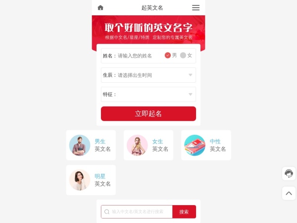 起名网英文名字提供英文起名,好听的英文名,英文名女孩,英文名男孩,各字母开头的英文名字大全,在线起英文名字等功能给大家起英文名参考。