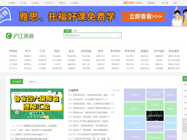沪江英语是沪江旗下英语学习资讯网站,是国内最具有亲和力的英语学习网站之一,专注于打造人气的英语学习交流互动网站,为全国数千万英语学习者提供专业服务。