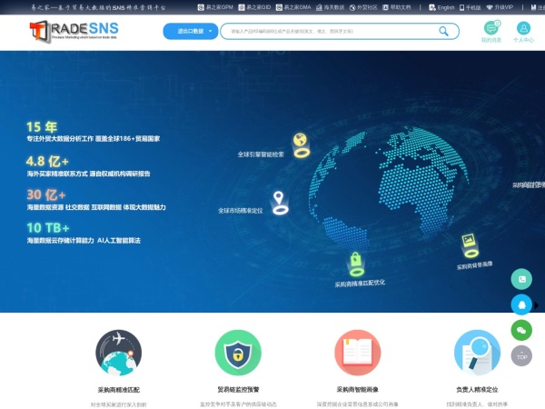 易之家是基于全球贸易数据、垂直贸易人脉的SNS精准营销平台。提供全球海关数据、进出口数据、外贸数据的查询,包含各国供应商、采购商公司名单和产品贸易数据库。