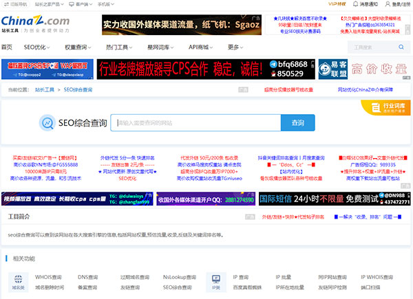 站长工具是站长的必备工具。经常上站长工具可以了解SEO数据变化。还可以检测网站死链接、蜘蛛访问、HTML格式检测、网站速度测试、友情链接检查、网站域名IP查询、PR、权重查询、alexa、whois查询等等。