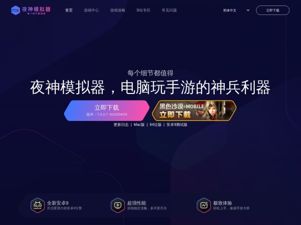 安卓模拟器哪个好用?电脑玩手游首选夜神安卓模拟器。夜神模拟器采用领先内核(基于Android7.1),同时是全球首家支持Android9内核的模拟器,在性能、稳定性及兼容性等方面有着同类产品无可比拟的优势。高清流畅,多开挂机更省资源,键鼠和手柄操作给你完美的操控体验,畅享电脑玩手游的至高快乐。