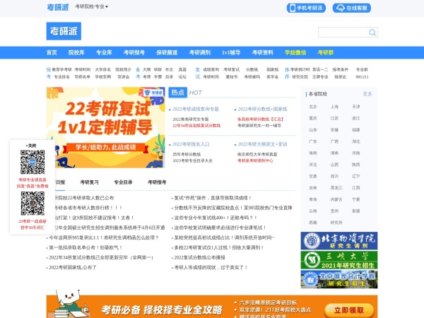 考研派[考研网]是国内领先的考研网站之一,使命-帮助每位考研人成功,为考研人提供各院校研招网资讯、考研一对一辅导和全面的研究生院考研官网资讯服务,旗下有:考研派之家微信公众号、考研派APP、考研网等。