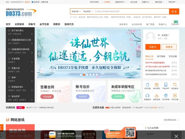 嘟嘟网络游戏服务网dd373为广大游戏玩家提供专业的游戏币、账号、装备、点券等交易服务,是国内专业安全便捷的游戏交易平台!